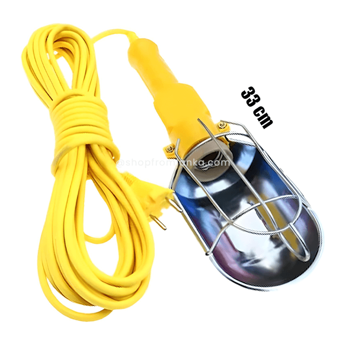 - Compact – Thanks to its small dimensions, the yellow hand lamp with European plug switch is both convenient to use and store. Thanks to its compact size, it can be easily installed in hard-to-reach places where large lamps can be difficult to access. After use, the construction light can be easily stored. Due to its small size, it is easy to hide it in a drawer or toolbox.